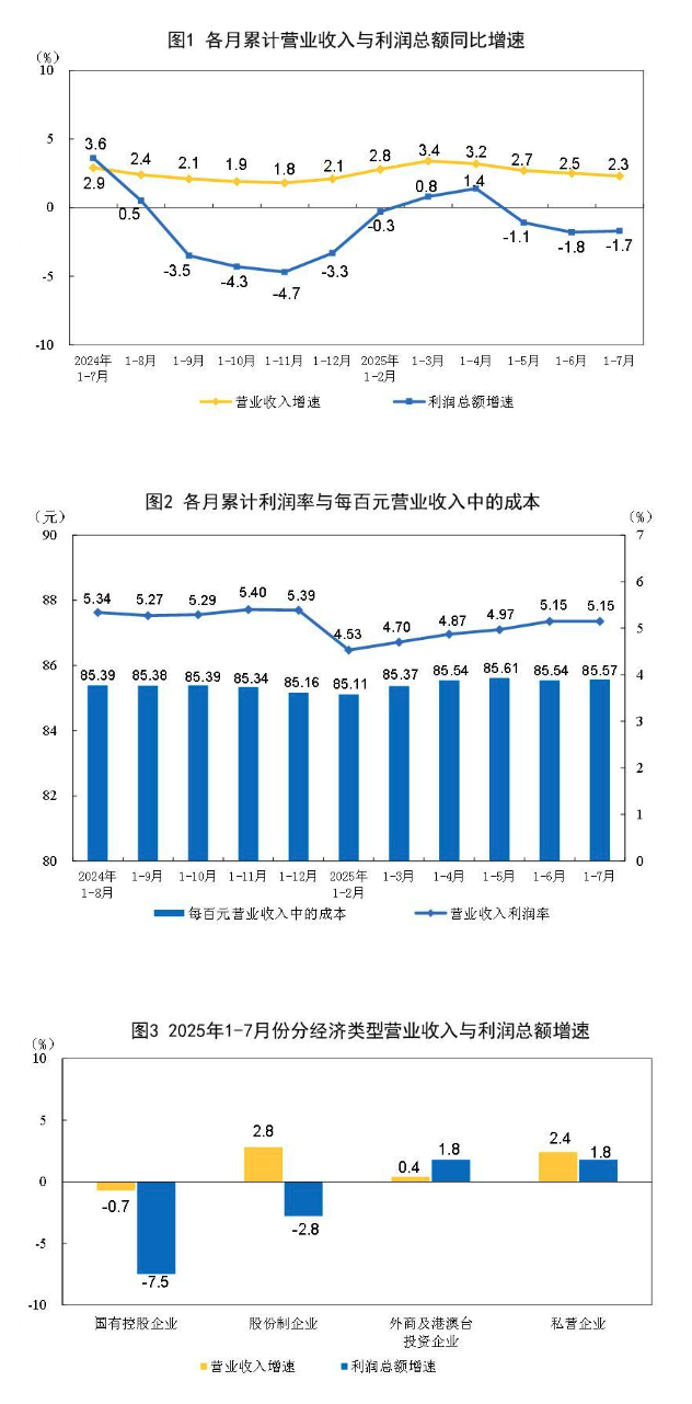 7月份,規(guī)模以上工業(yè)企業(yè)利潤(rùn)同比下降1.5%。